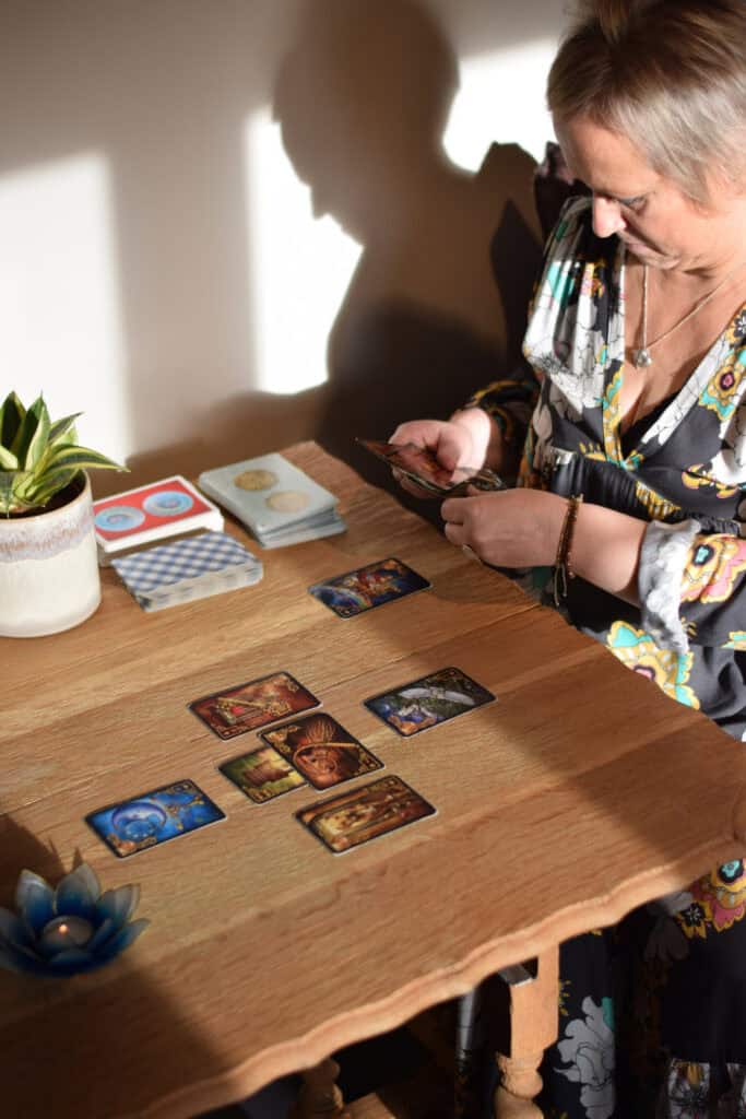 Vooraf stem ik me af op jouw persoonlijke energie. Ik werk met de Lenormand- en Tarotkaarten, en met mijn intuïtie als kompas.